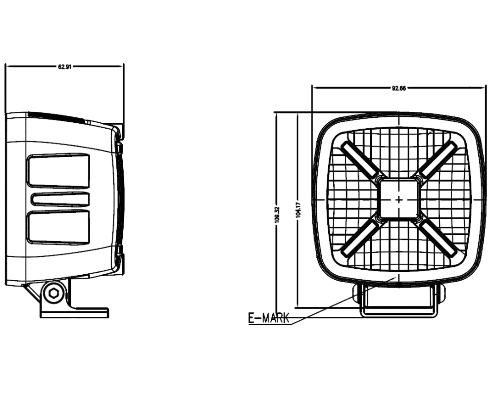 Zaawansowana optyka gwarantuje szerokie i równomierne rozproszenie światła – wiązka skutecznie oświetla przestrzeń roboczą zarówno na boki (do 60 m w lewo i prawo), jak i w dal (1 lux na dystansie do 80 m). To idealne rozwiązanie do pracy nocą, manewrowania oraz operowania sprzętem w terenie.