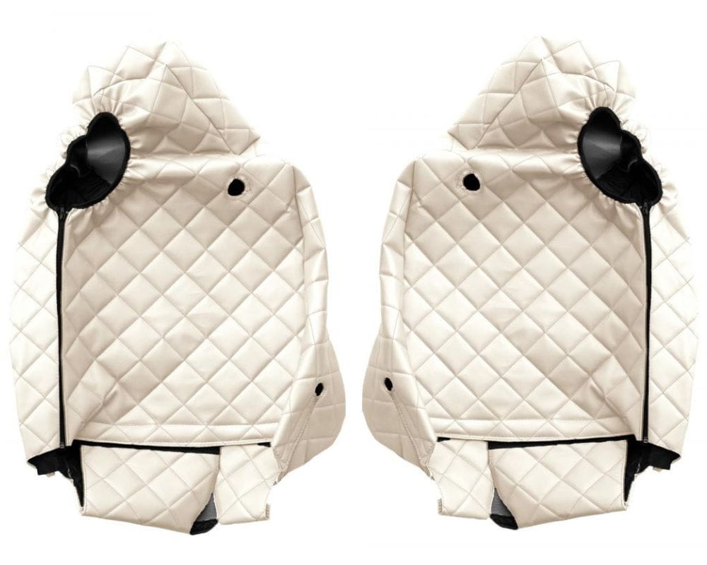 Pokrowce na fotele uszyto z dwóch rodzajów materiału. Środkową część wykonano z materiału syntetycznego o dużej przepuszczalności powietrza, co zapewnia odpowiednią wentylację siedziska i duży komfort pracy podczas wielogodzinnych tras. Dopełnienie całości stanowią skórzane boczne elementy (Eko-Skóra), które są bardzo trwałe i wygodne w eksploatacji.