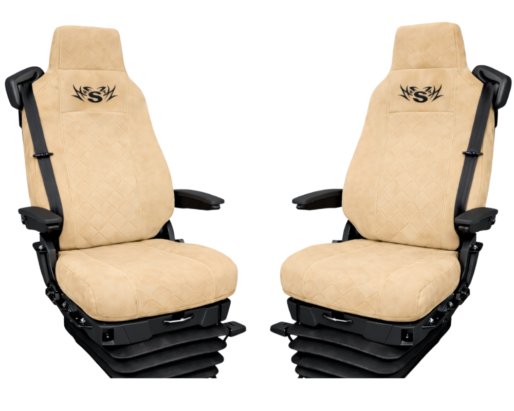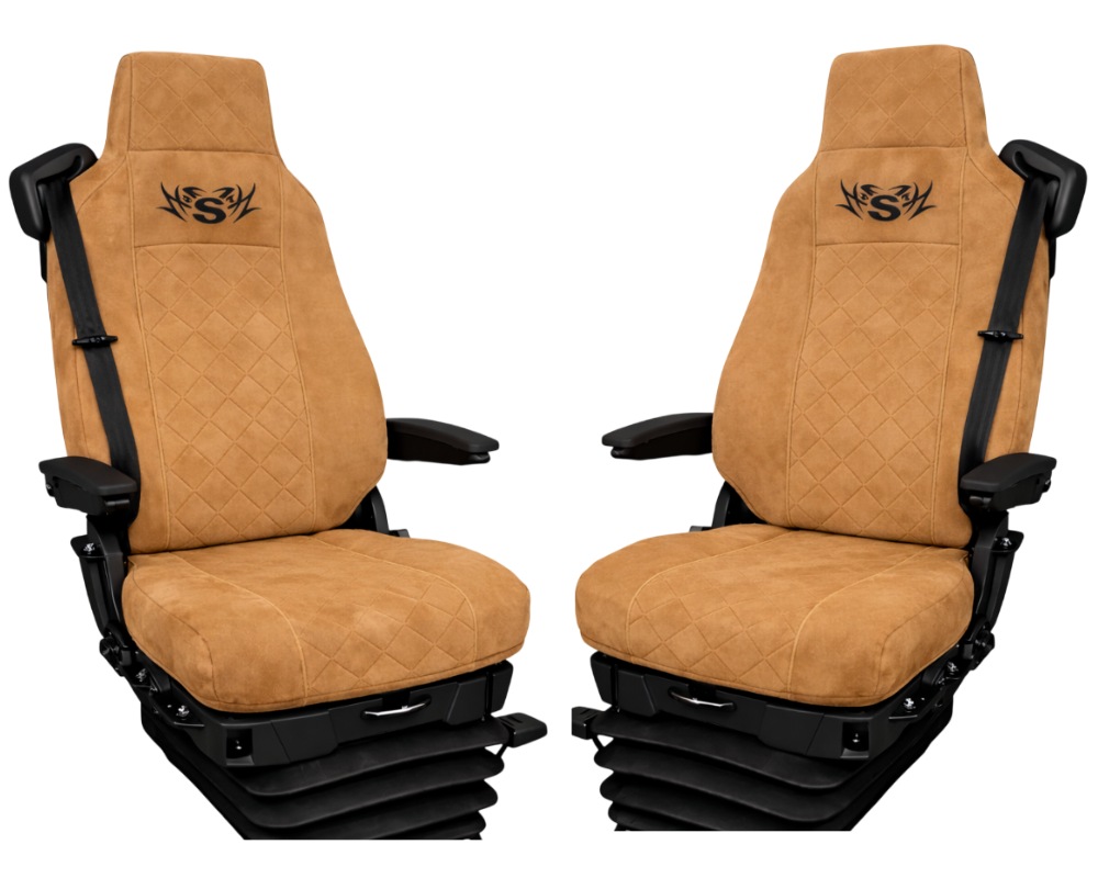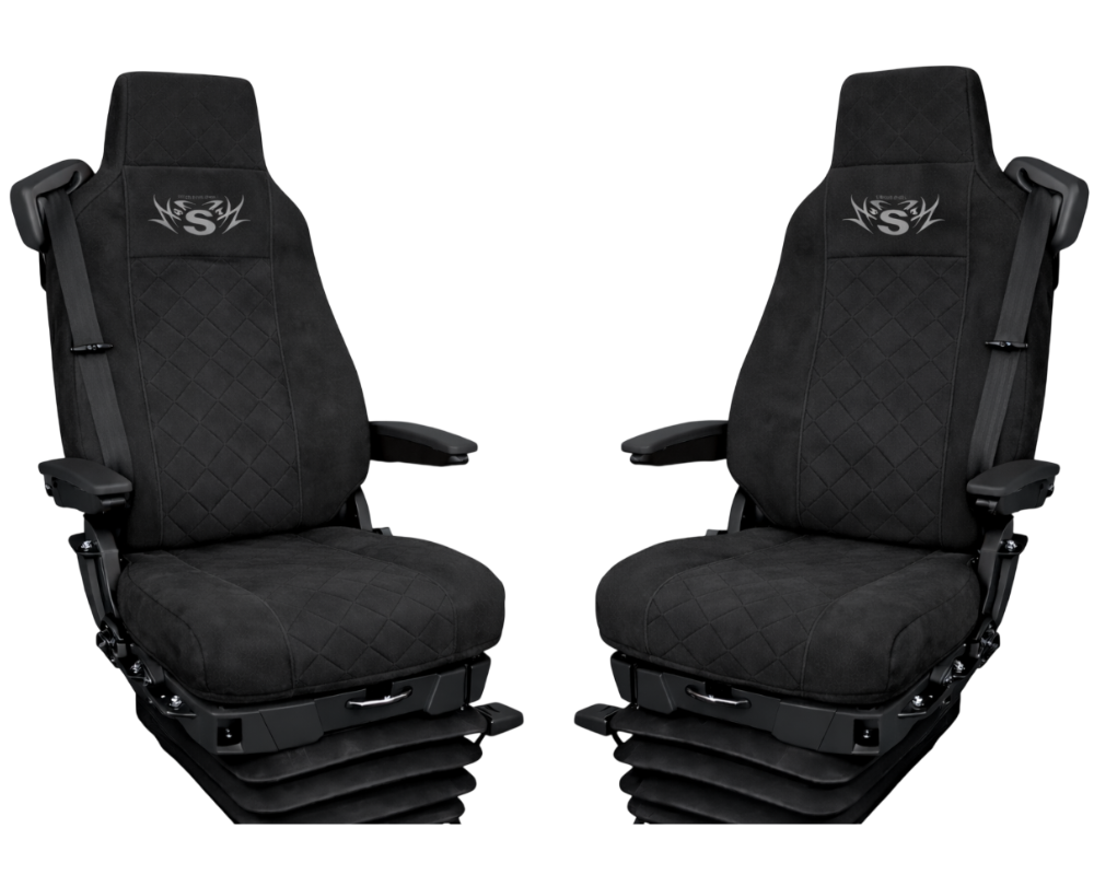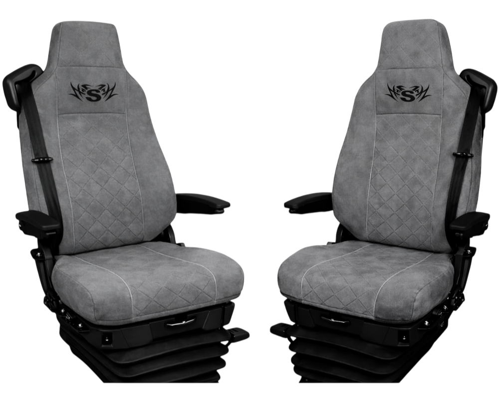 Pokrowce na fotele Scania S, R, G, P od 2004r. welurowe (dwa fotele takie same kierowca i pasażer z wąskim zagłówkiem)