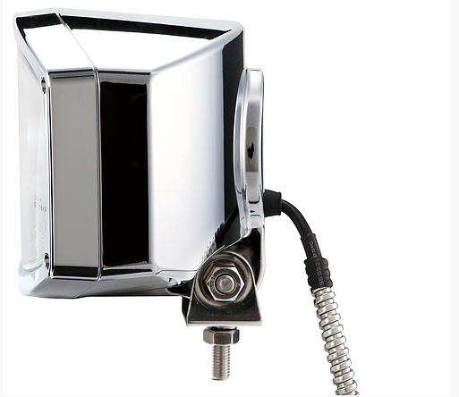 Wysokiej jakości owalny reflektor dalekosiężny typu Jumbo z postojem ledowym oraz chromowaną obudową.