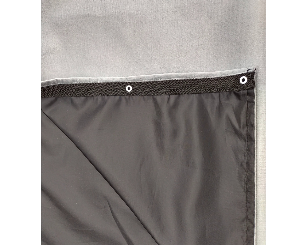 Zasłony wykonane z dwóch warstw materiału od strony zewnętrznej jest to przyjemny w dotyku materiał pluszowy, od strony wewnętrznej jest podszewka. Haczyki montowane są na oczkach nie na taśmie co poprawia wygląs oraz ułatwia montaż zasłon.